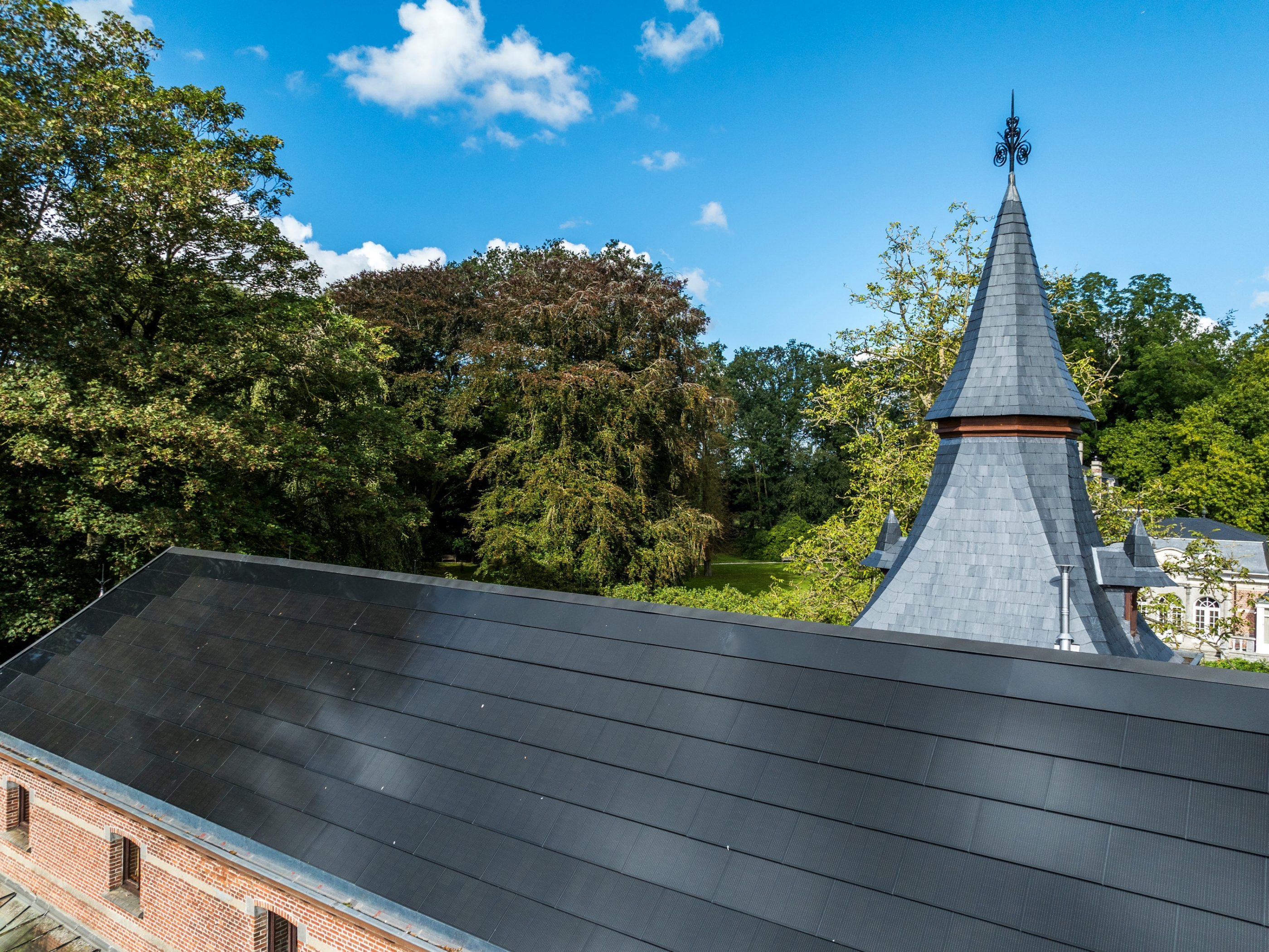 For the renovation, the private owner worked with roofer Tom Stockman, who had already renewed the roof of the main residential house ten years earlier. Facing south, the coach house roof was ideal for generating solar energy, yet it came with an aesthetic challenge: upon arriving at the castle, it is the most visually prominent roof. The owner wanted to generate solar energy without it being noticeable, therefore they chose Wevolt X-Roof combined with natural slate, blending cutting-edge energy technology with a refined, natural look. The Wevolt X-Roof is a complete in-roof solar solution that blends seamlessly with the dark natural material that has covered the roof for centuries.